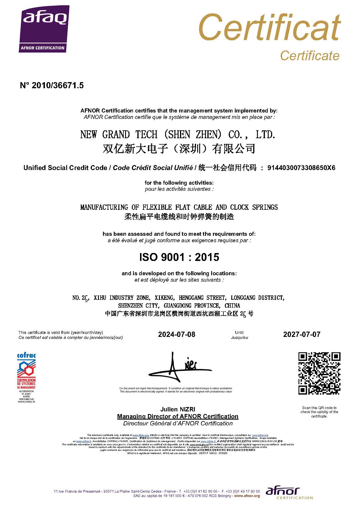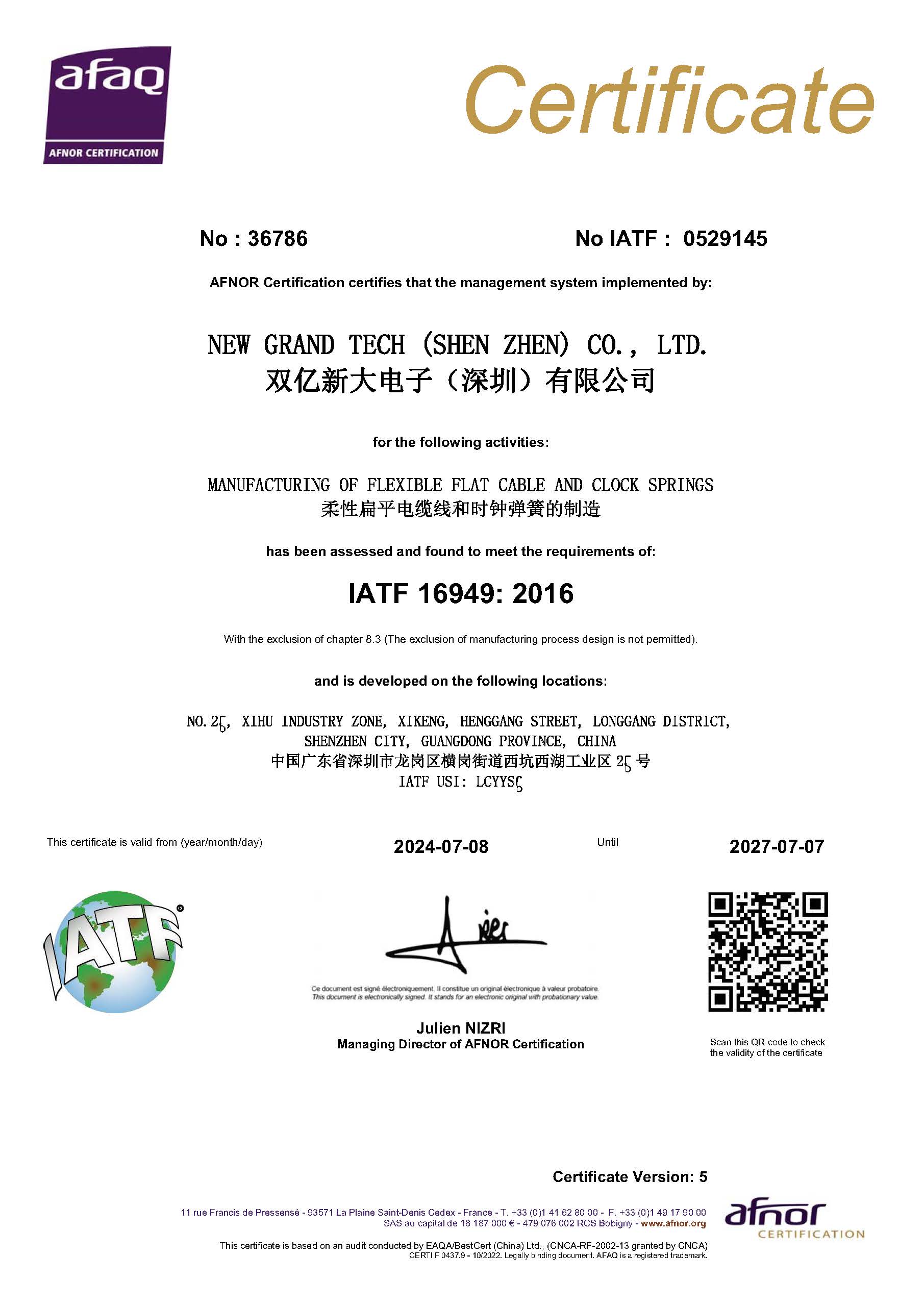 新大科技不仅拥有先进的自动化生产设备和精密的检测仪器,还具备雄厚的技术力量和优秀的管理团队,在全体员工的不断努力下取得了TS16949/ISO9001质量管理体系和ISO14001环境体系认证。公司本着“持续改进,制造一流产品”的质量方针,在2002年产品通过美国UL认证...